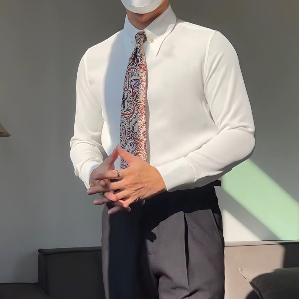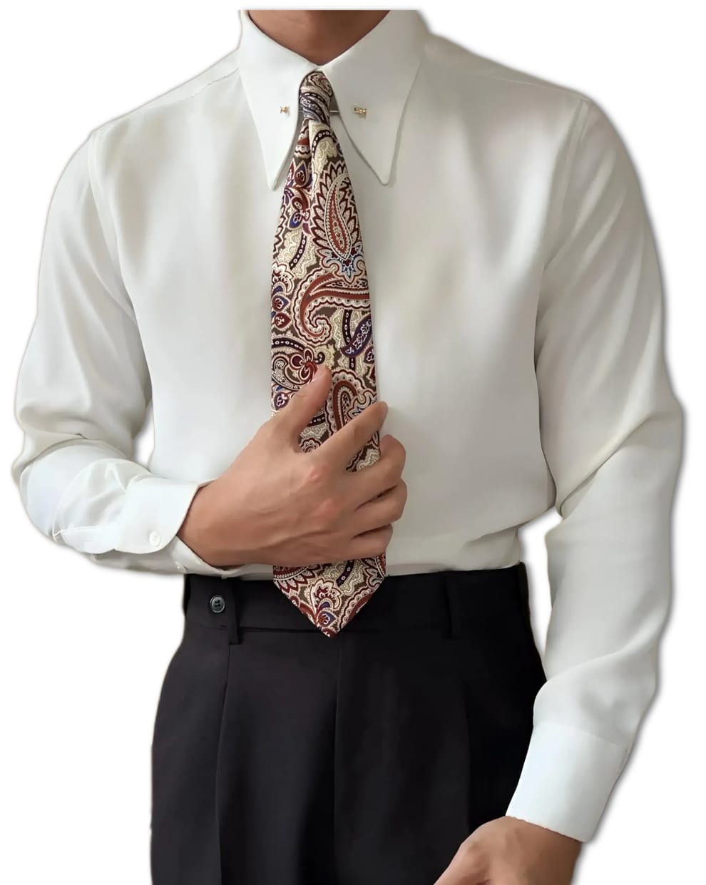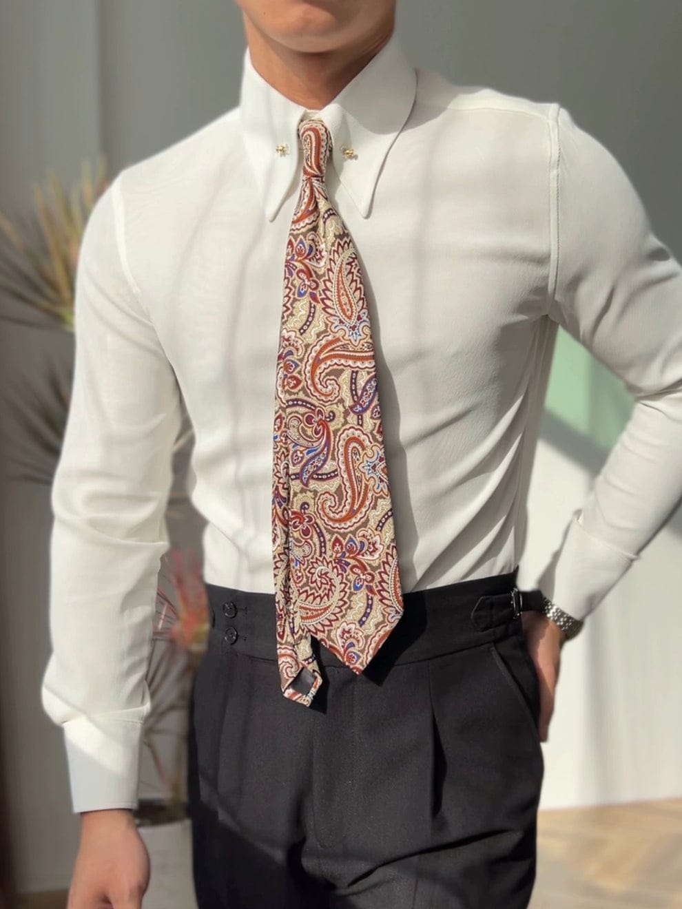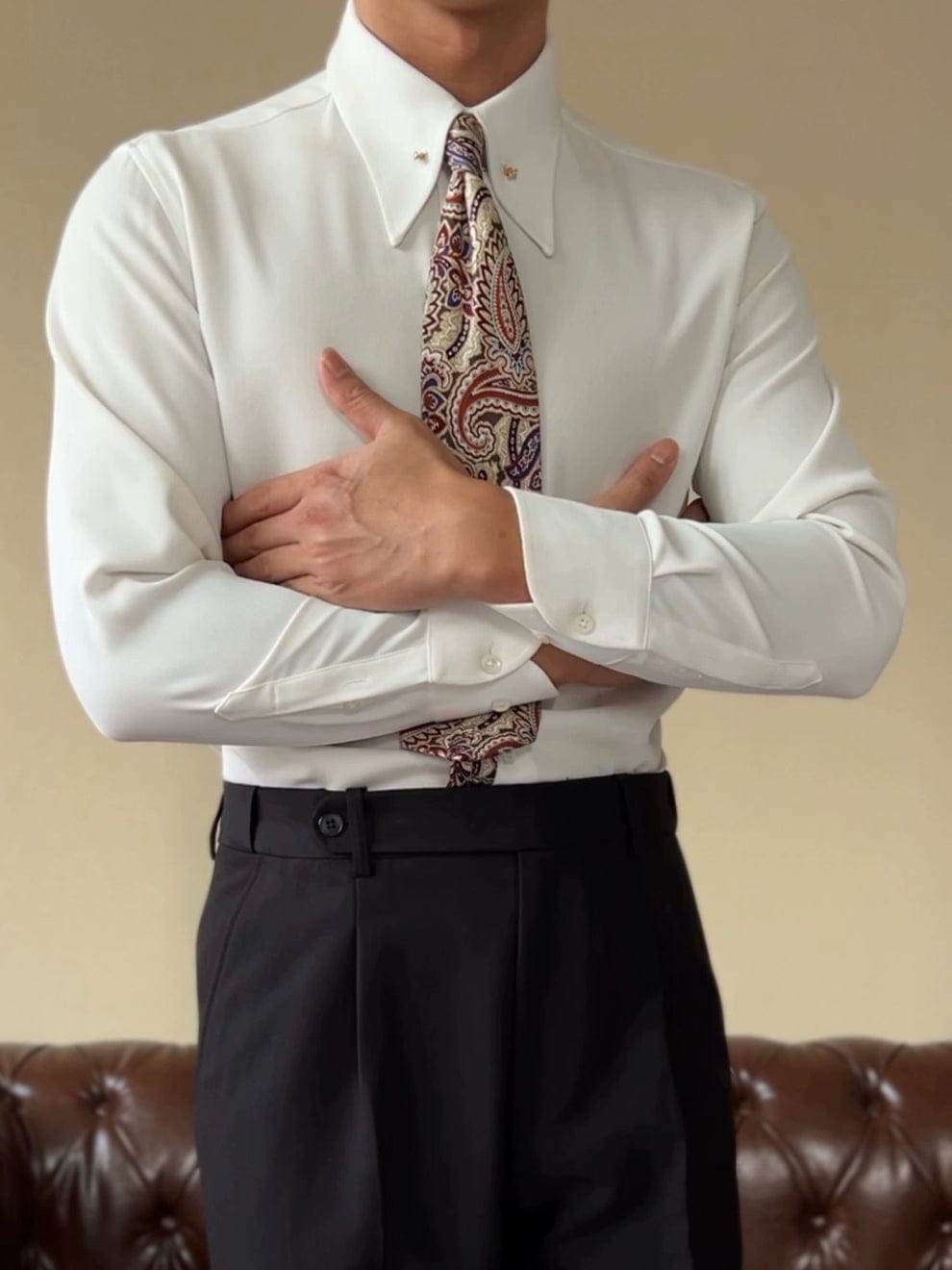 • Additional Note: The use of a collar bar adds a vintage and refined touch to the ensemble
